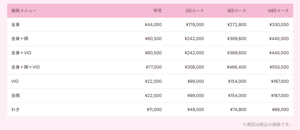 全身+VIO¥110,000¥500,000